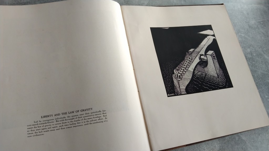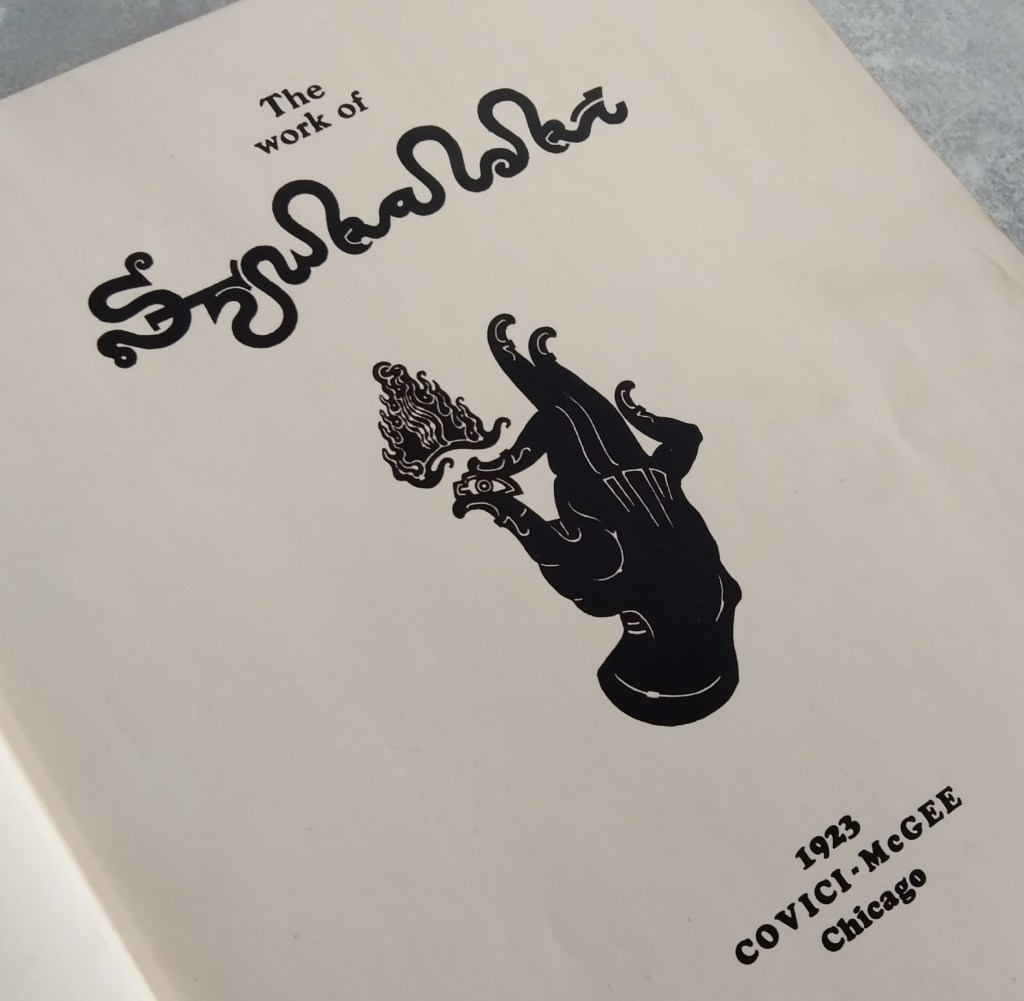The Work of Szukalski 1923 was the first publication presenting the collective work of Stach from Warta. More than a dozen color graphics and over 100 black and white drawings or photos are presented on over a hundred pages. I will add that the publication also uses photos that were perfectly developed in 1989 by Tom Consilvio, and which I periodically offer. The publishing house of the work was the niche, quickly closed luxury publishing house Covici-McGee (also responsible for Maxwell Bodenheim’s Sardonic Arm, the first book in history designed by Szukalski). A feature, not a defect, of The Work of Szukalski is a cracked spine, which results from the original composition of the entire publication. However, there are at least two bookbinders in Poland who can handle it without a trace. Probably less than 500 copies were published, there is no certain information about this. The presumptions result from the fact that no copies with a number greater than 500 have ever been found. The book is numbered. Pieces with Stach’s signature are extremely rare.